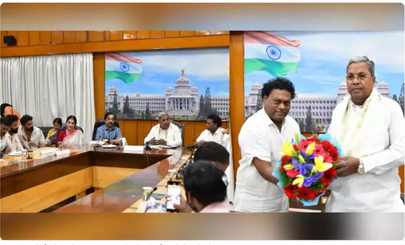 ಮುಖ್ಯಮಂತ್ರಿ ಸಿದ್ದರಾಮಯ್ಯ 16 ನೇ ಬೆಂಗಳೂರು ಅಂತಾರಾಷ್ಟ್ರೀಯ ಚಲನಚಿತ್ರೋತ್ಸವದ ಸಂಘಟನಾ ಸಮಿತಿಯ ಸಭೆಯಲ್ಲಿ ಮಾತನಾಡಿದರು. ಕರ್ನಾಟಕ ಚಲನಚಿತ್ರ ಅಕಾಡೆಮಿ ಅಧ್ಯಕ್ಷ ಸಾಧುಕೋಕಿಲ, ಮುಖ್ಯಮಂತ್ರಿಯವರ ರಾಜಕೀಯ ಕಾರ್ಯದರ್ಶಿ ಕೆ. ಗೋವಿಂದರಾಜು ಪಾಲ್ಗೊಂಡಿದ್ದರು.